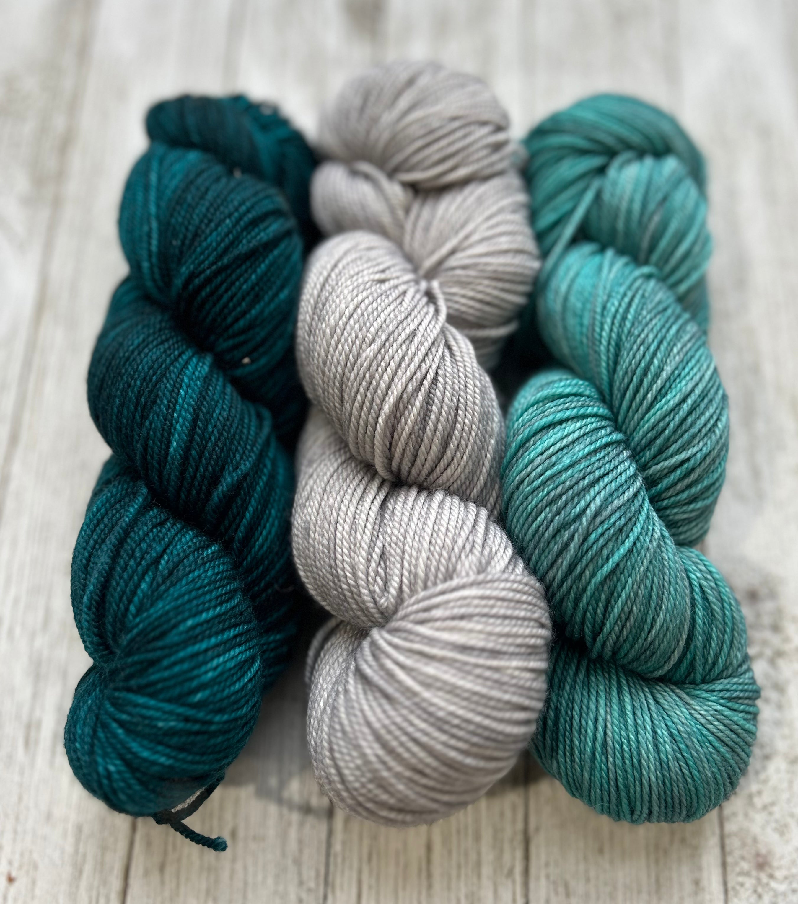 Each kit contains 3 - 50g skeins of Cashmere Sock, from our house brand, Colour Adventures.