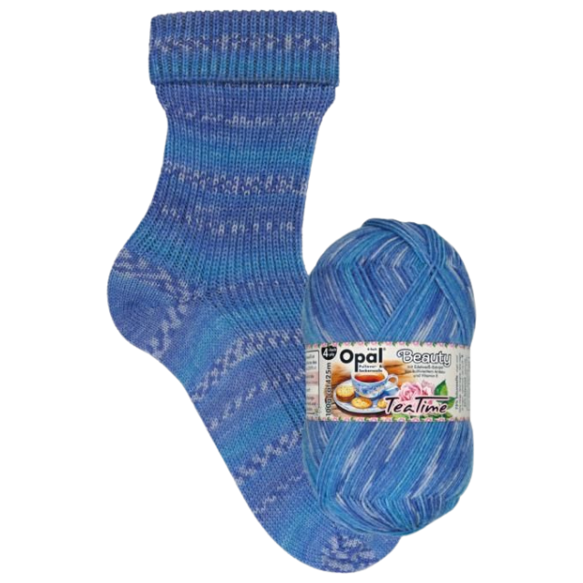 Beauty by Opal creates a soft self striping pattern when knitted. With pops of contrasting colour in a semi-checkerboard pattern, you're sure to have your tea time guests begging you for the yarn!