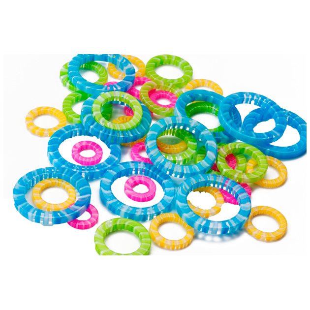 A mixture of different sized stitch markers that will work up to a 15.0mm needle.
