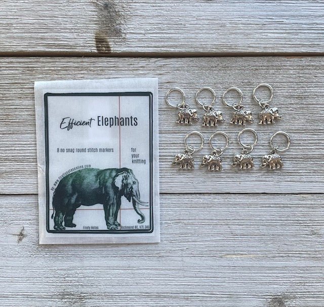 Elephants: 7 stitch markers, 1 progress tracker