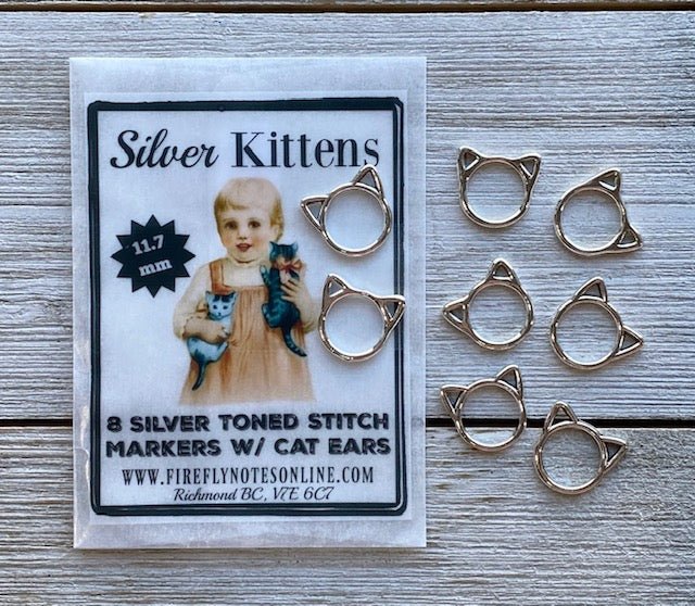Itty Bitty Silver Kitties: 12 small stitch markers
