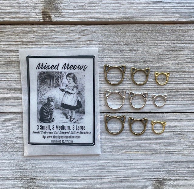 Cats Mixed Meows: 3 large, 3 medium, 3 small stitch markers