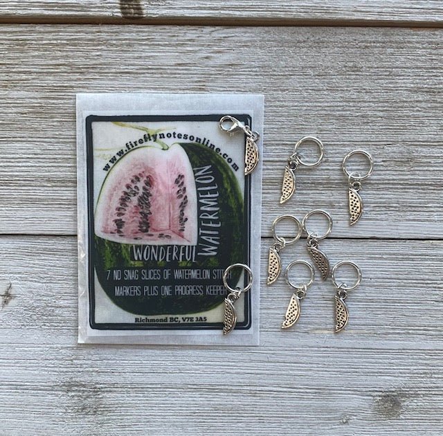 Watermelons: 7 stitch markers, 1 progress tracker