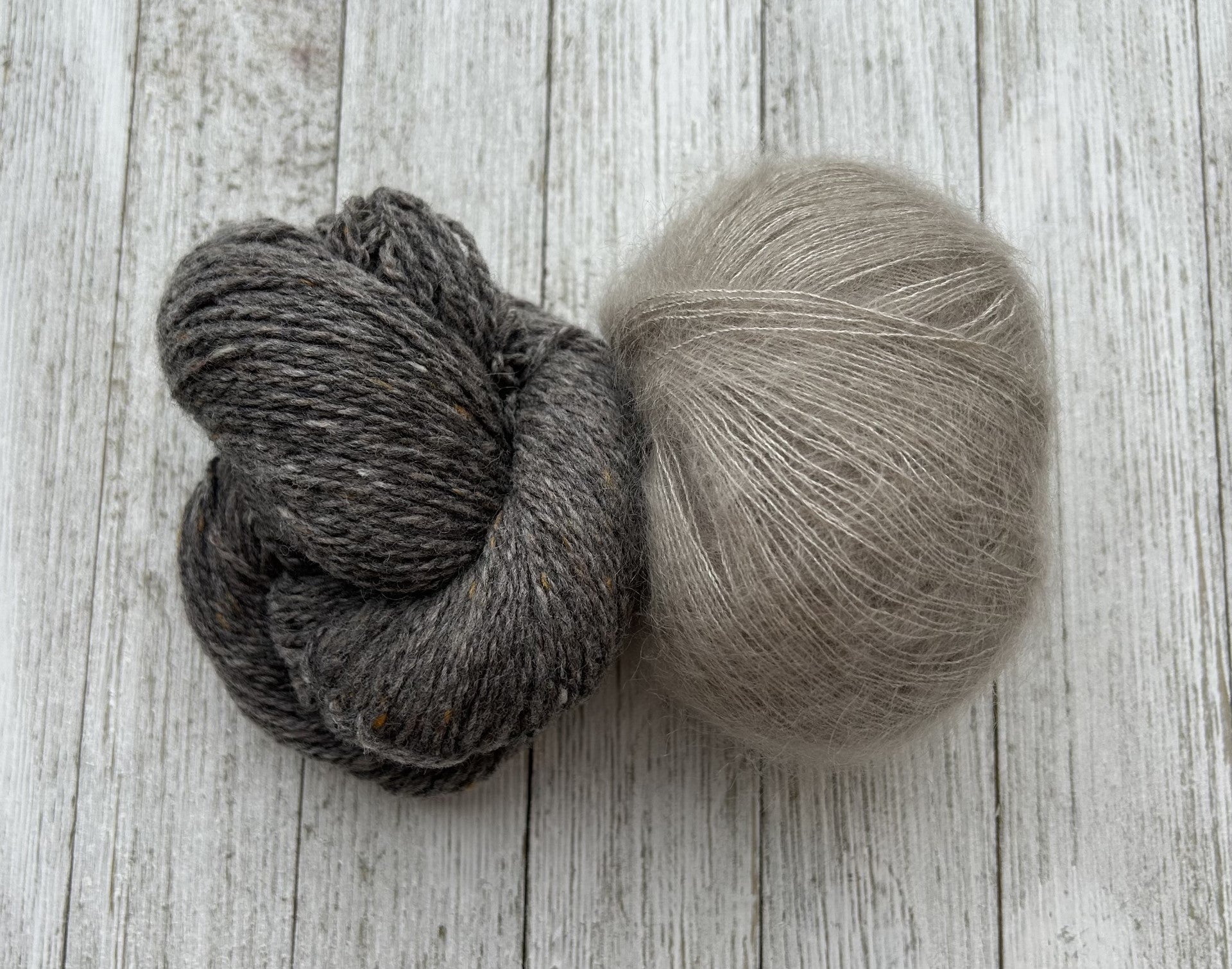 A) Loch Lomond (100% organic wool) and Malabrigo Mohair (72% mohair & 28% silk)