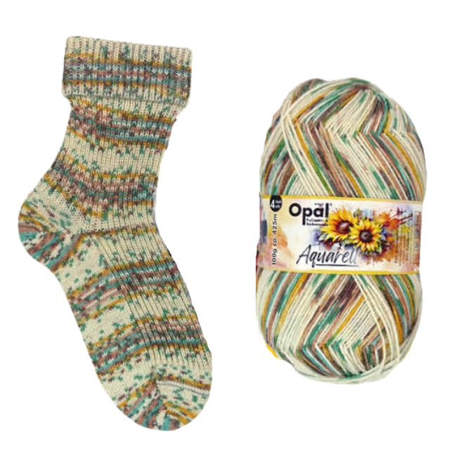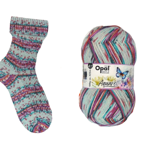 Aquarell Watercolour by Opal creates a self-striping pattern that evokes the image of watercolour paints spreading across the canvas - only the canvas is your knitwear! A truly spectacular blend of self-striping and speckled patterning, you can have the best of both worlds.