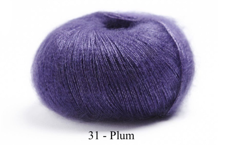 Premia is the ultimate in luxury. Ultra light and lofty, this lace weight mohair could be knit alone for a cloud-like garment, or doubled with another yarn to give it the soft mohair effect and silk sheen.