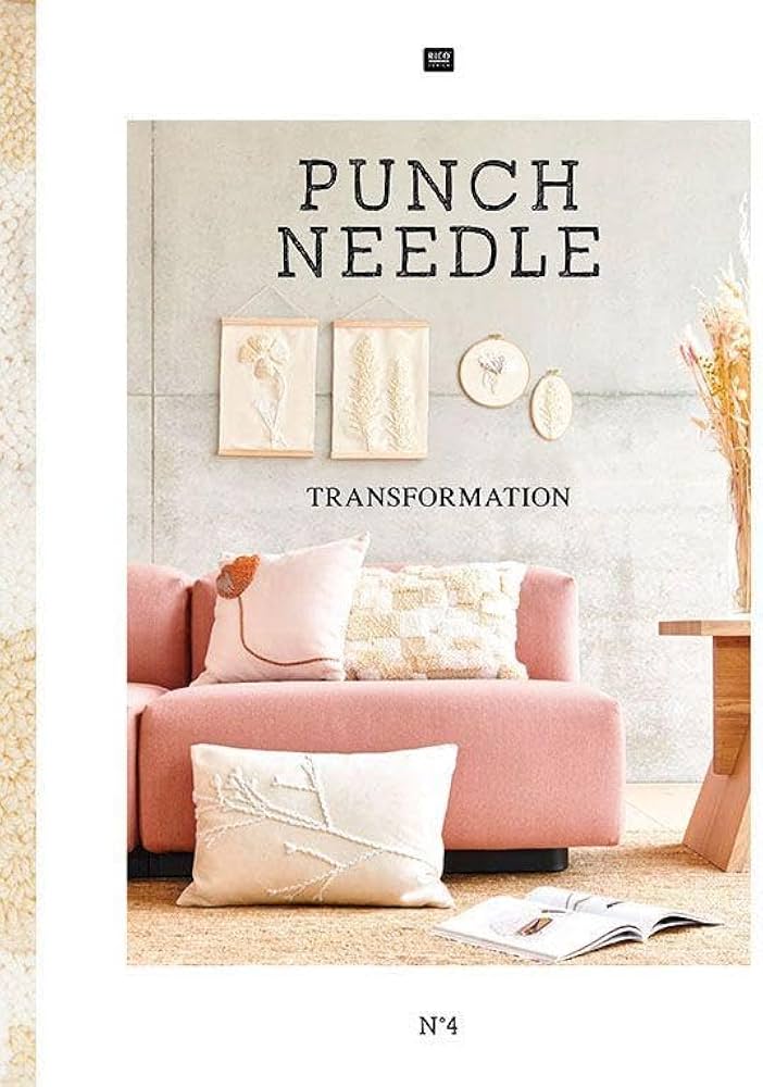 Rico Design Punch Needle Book No. 4 Transformation features 25 modern home decoration designs inspired by dried flowers. Combined with graphic elements and harmonious colours, a modern, aesthetic decoration concept is created. Filigree twigs and grasses are embroidered onto pillows and pictures in satin stitch using the punch needle. Stunning, graphic designs create an exciting mix that gives your home a modern make-over.